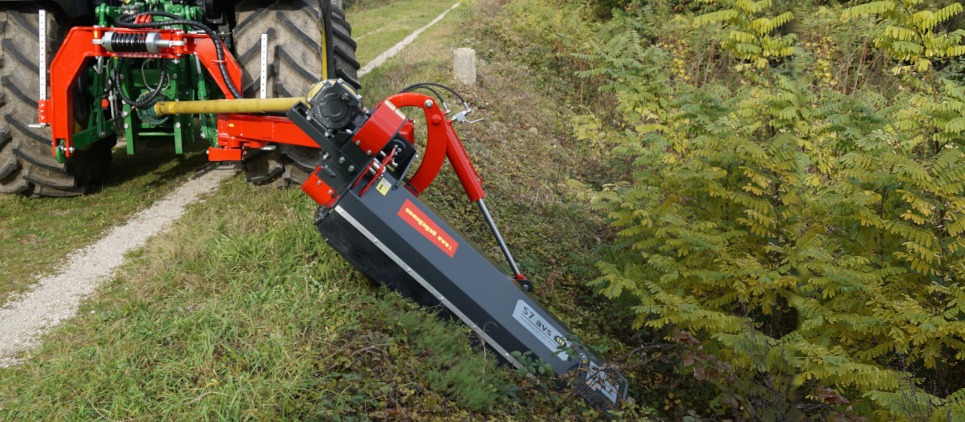 With its hydraulic side shift of up to 146 cm and tilt angle of +90° to -60°, it adapts to any terrain – ideal for landscape and municipal maintenance, renaturation projects, and mulching hard-to-reach areas.