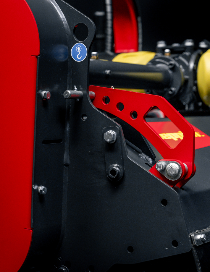 S7 compact für Wein- und Obstbau mit einer linear-hydraulischen Seitenverschiebung bis zu 68 cm mulcht Gras und Reisig bis zu 7 cm Durchmesser. Auf Wunsch ist dieser mit dem 2FAST-Schnellkuppelsystem für die Unterstockpflege erweiterbar. Die Maschine ist nah am Traktor positioniert – dies sorgt für eine stabile Führung und einen optimalen Schwerpunkt. Das robuste Gehäuse, der HELIX-Rotor mit spiralförmig angeordneten Schlägeln, die einstellbare M-FLAP-Haube sowie die austauschbaren Verschleißplatten und Gegenschneiden sorgen für einen vibrationsarmen Lauf und ein sauberes Schnittbild.