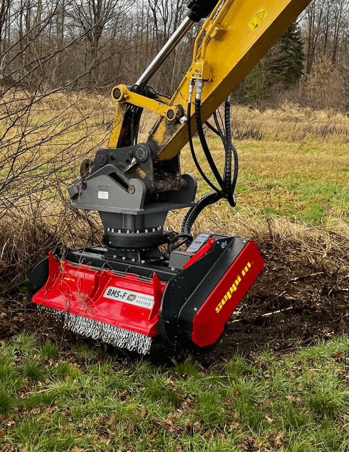 BMS-F — это прочный лесохозяйственный мульчер для экскаваторов класса 10–20 тонн. Он часто используется для борьбы с растительностью вдоль дорог и железнодорожных линий. Благодаря мощному лесному ротору и прочному шасси из высокопрочной стали AR400 он измельчает древесину диаметром до 20 см. Мощный двигатель M-BOOST обеспечивает эффективную работу при расходе 90–180 л/мин. Эта мульчирующая головка в стандартной комплектации оснащена твердосплавными инструментами. Новая система CUT-CONTROL обеспечивает точное управление резанием для быстрого и качественного измельчения древесины.