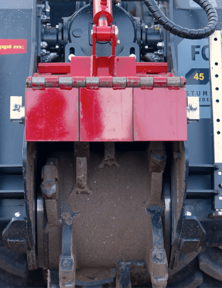 Измельчитель пней FC удаляет пни и пни деревьев диаметром до 25 см и подготавливает почву для повторной посадки. Он обрабатывает почву на глубину до 27 см. Прочный, выдающийся ротор с фиксированными твердосплавными инструментами в сочетании с закаленными контррезаками обеспечивает идеальные результаты мульчирования. Усиленное шасси обеспечивает долговечность. Гидравлический кожух и передняя и задняя защита с цепями и заслонками обеспечивают безопасность во время работы.