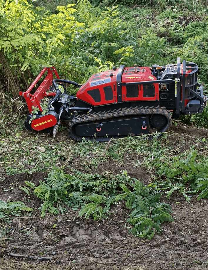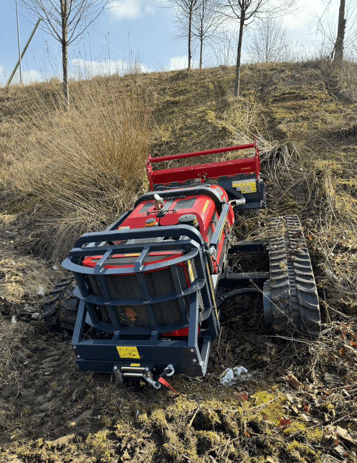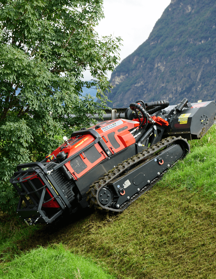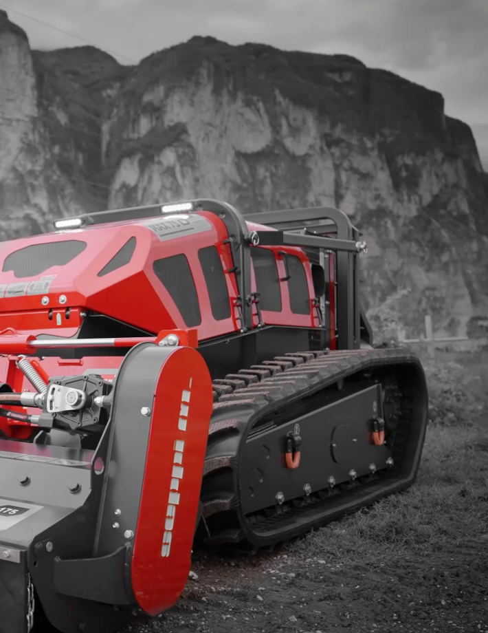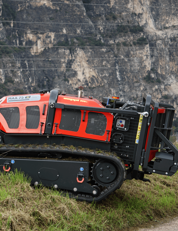 MAX 75 le — это прочный радиоуправляемый гусеничный инструментальный носитель мощностью 75 л.с. с 4-цилиндровым турбодизельным двигателем. Благодаря большой гидравлической мощности он всегда обеспечивает достаточный крутящий момент. Машина имеет подъемный механизм с поддерживаемым плавающим положением FLOAT и защищена поддоном и металлическими кожухами. Ширина машины может регулироваться гидравлически для обеспечения оптимальной устойчивости и тяги на сложной местности и может преодолевать уклоны до 55°.
