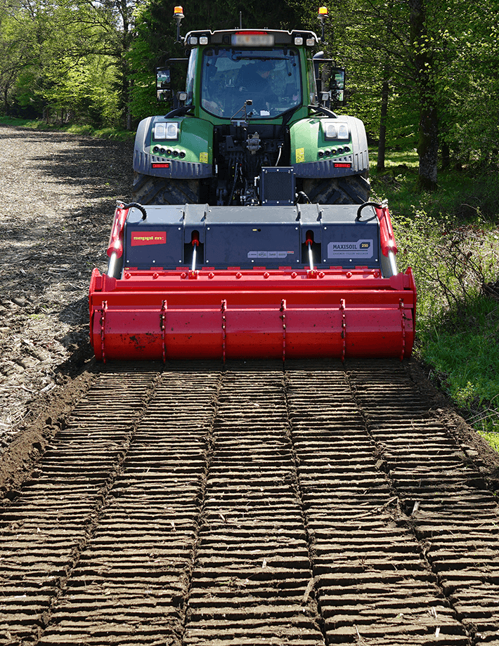 С рабочей шириной 250 см и 350 см MAXISOIL является крупнейшим лесохозяйственным культиватором SEPPI. Инновационный ротор V-LOCK с вставками из карбида вольфрама дробит камни диаметром до 50 см, измельчает древесину диаметром до 90 см и обрабатывает почву на глубину до 35 см. Система наклона трансмиссии ADAM улучшает экскавацию и делает работу более легкой и эффективной. Прочное шасси из стали AR400 было усилено сменными пластинами для обеспечения длительного срока службы. С помощью опциональной трансмиссии 2SPEED POWERSHIFT скорость ротора можно регулировать непосредственно на терминале ISOBUS.