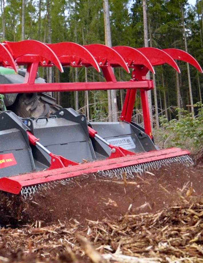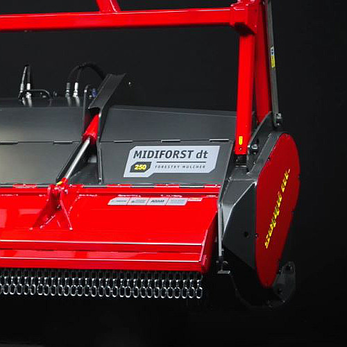 Компактный лесохозяйственный мульчер MIDIFORST dt приводится в движение с обеих сторон и измельчает древесину диаметром до 30 см. Благодаря прочной конструкции и фиксированным молоткам он идеально подходит для использования в лесу. Ротор HELIX с инструментами из карбида вольфрама, в зависимости от применения MINI DUO с двумя вставками или MONO TIP V-LOCK, обеспечивает максимальную эффективность. Простая замена инструмента сводит к минимуму время простоя. Мульчер также доступен для переднего крепления, а прижимное устройство доступно в нескольких версиях в зависимости от требований.