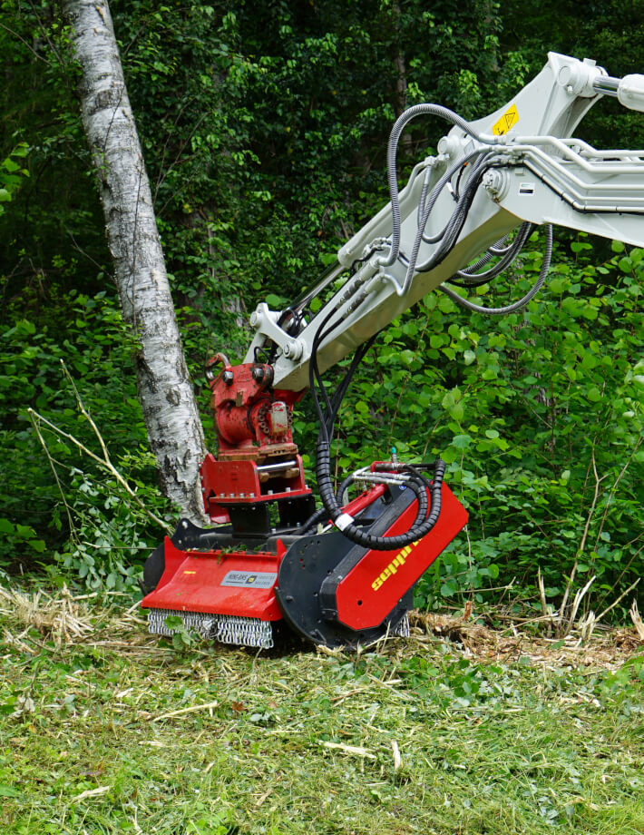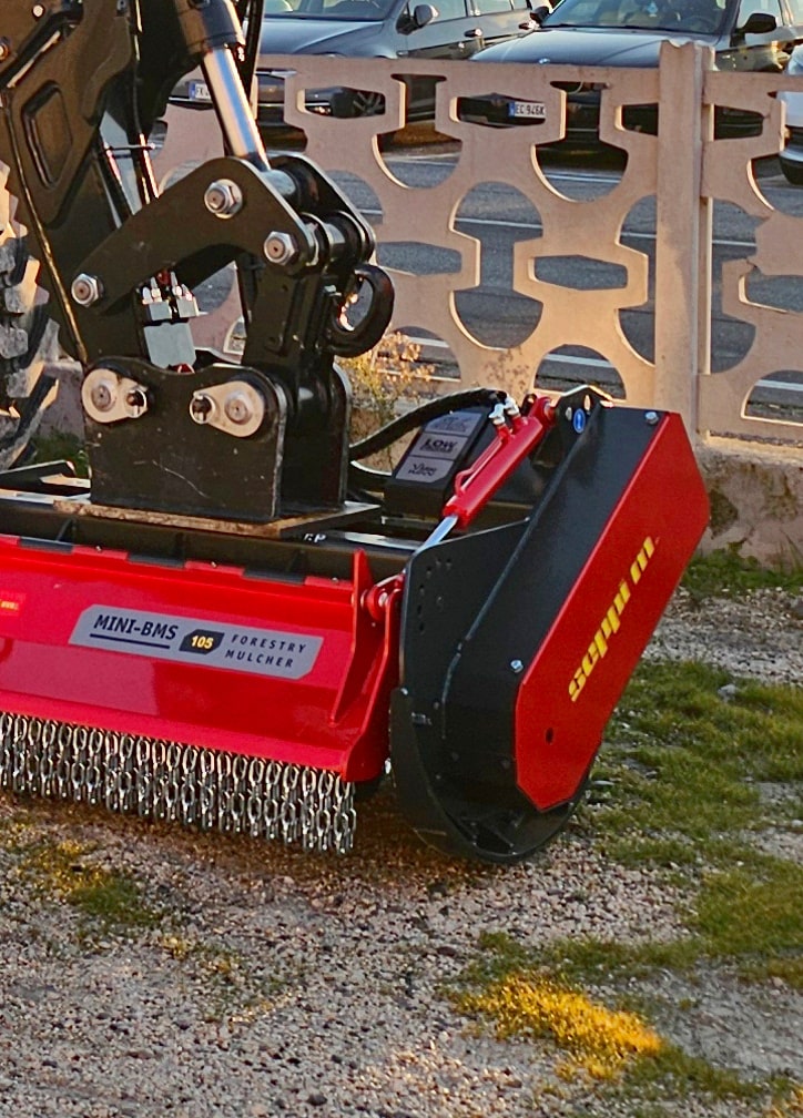 MINI-BMS — самый легкий лесохозяйственный мульчер в ассортименте SEPPI, идеально подходящий для экскаваторов весом от 5 до 10 тонн. Он измельчает кустарник и древесину диаметром до 10 см и обеспечивает отличную маневренность благодаря низкому профилю и прочной конструкции. Мульчер оснащен запатентованным ротором MINI DUO с твердосплавными вставками и может быть оборудован двумя различными гидравлическими двигателями. Шасси изготовлено из износостойкой стали AR400, а кожух регулируется гидравлически.