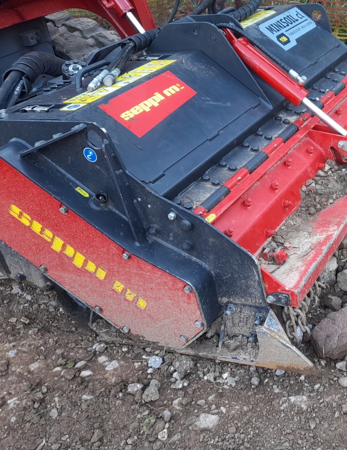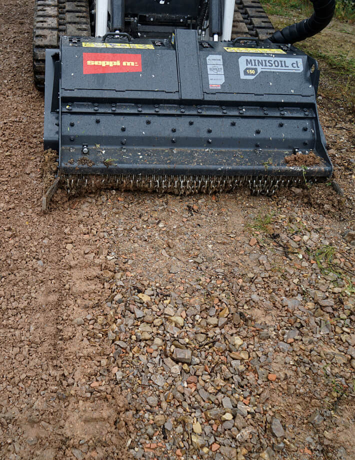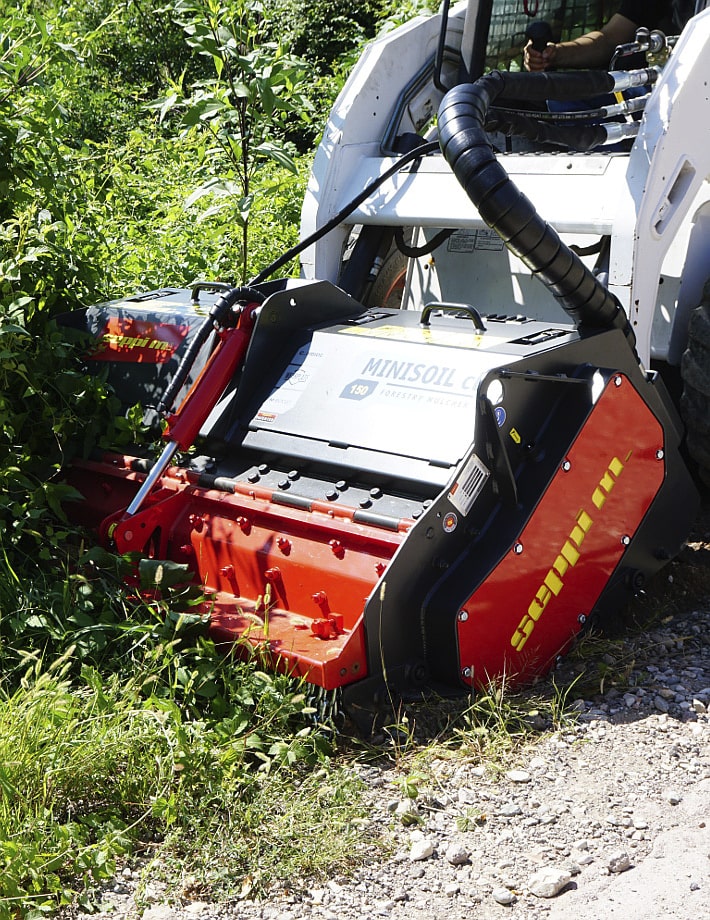 MINISOIL cl — это мощный и компактный лесохозяйственная камнедробилка и лесной мульчер для мини-погрузчиков и для гидравлических компактных погрузчиков в соответствии со стандартом SAE. Он дробит камни диаметром до 15 см, измельчает древесину диаметром до 20 см и культивирует на глубину до 10 см. Запатентованный ротор с инструментами SUPER DUO PROTECT из карбида вольфрама обеспечивает эффективное измельчение, а прочные ломающие планки гарантируют особенно тонкий результат. Благодаря низкому профилю оператор всегда имеет полный контроль. Машина имеет двойной привод с поршневыми двигателями M-BOOST (рекомендуемый расход: 105-250 л/мин).
