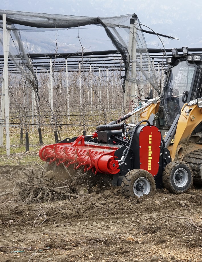 - Измельчение остатков урожая и обрезков в оливковых рощах и ореховых плантациях