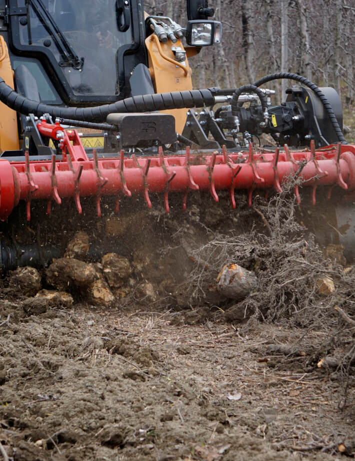 R20 pick-up cl — чрезвычайно эффективный мульчер для компактных погрузчиков для измельчения дерева до 20 см Ø (двигатель VARIO FLOW — рекомендуемый расход 90–160 л/мин). Уникальный ротор pick-up захватывает ветки и быстро обрабатывает их в камере ротора. Технология RIC (радиальное интерференционное резание) с износостойкими профилями ротора и наконечниками MINI TIP RIC из твердого металла обеспечивает эффективное измельчение материала. Результат измельчения приводит к более быстрому разложению, что очень выгодно в сельском хозяйстве. Идеально подходит для выращивания фруктов и цитрусовых, оливковых плантаций и выращивания орехов.