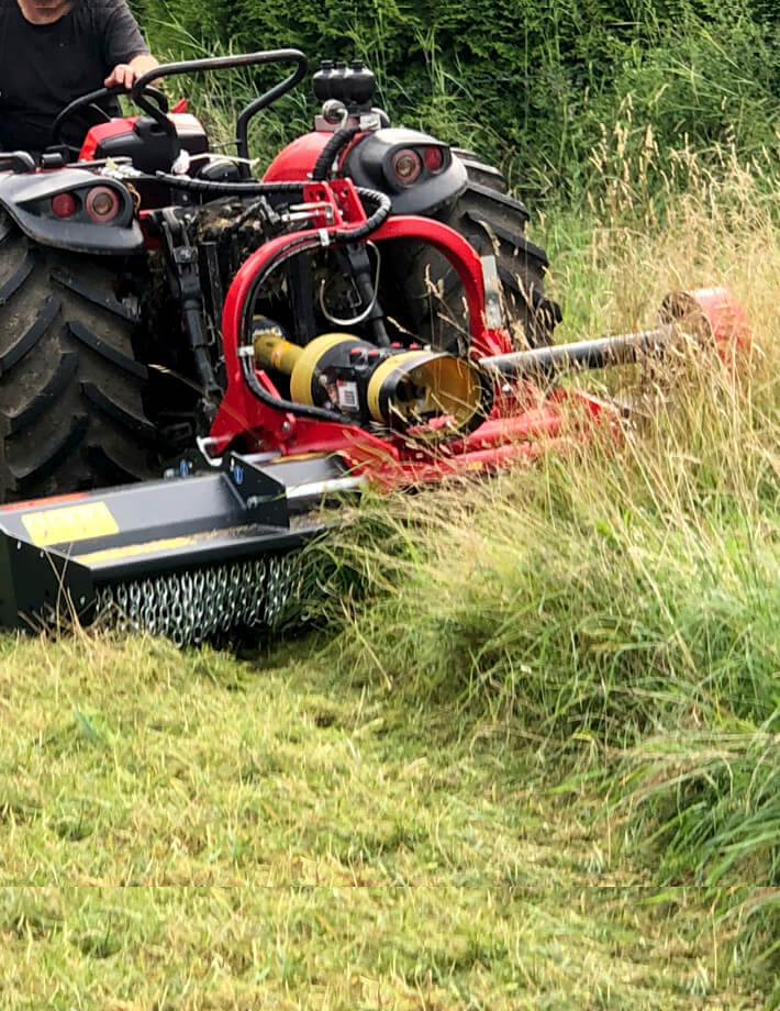 Реверсивный мульчер с боковым сдвигом измельчает траву и обрезки до 5 см в диаметре