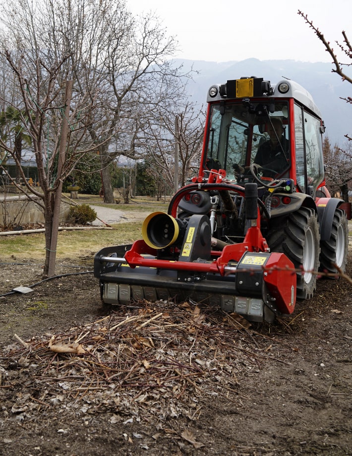 Ультраузкая и низкая конструкция позволяет проводить мульчирование в непосредственной близости от ствола