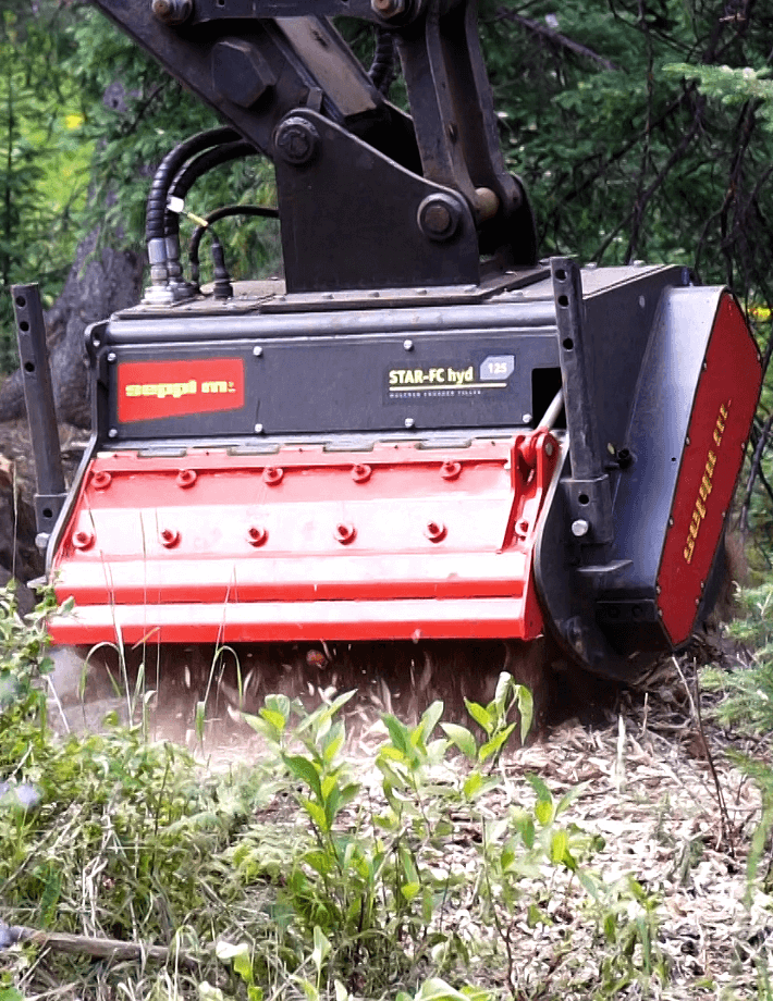 Универсальная лесохозяйственная фреза STAR-FC hyd измельчает пни, корни и камни на глубину до 30 см. Инновационный ротор V-LOCK измельчает пни диаметром до 40 см и камни размером до 15 см. Мощный зубчатый ременный привод CARBONCHAIN и двигатель M-BOOST работают при расходе 120-320 л/мин, а машина с рабочей шириной 125 см может быть оснащена двойным приводом для самых сложных работ. Этот культиватор идеально подходит для использования в лесном хозяйстве и ландшафтном дизайне для подготовки почвы к пересадке.