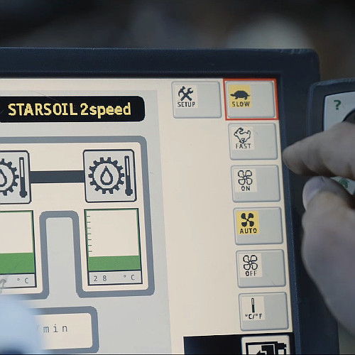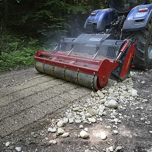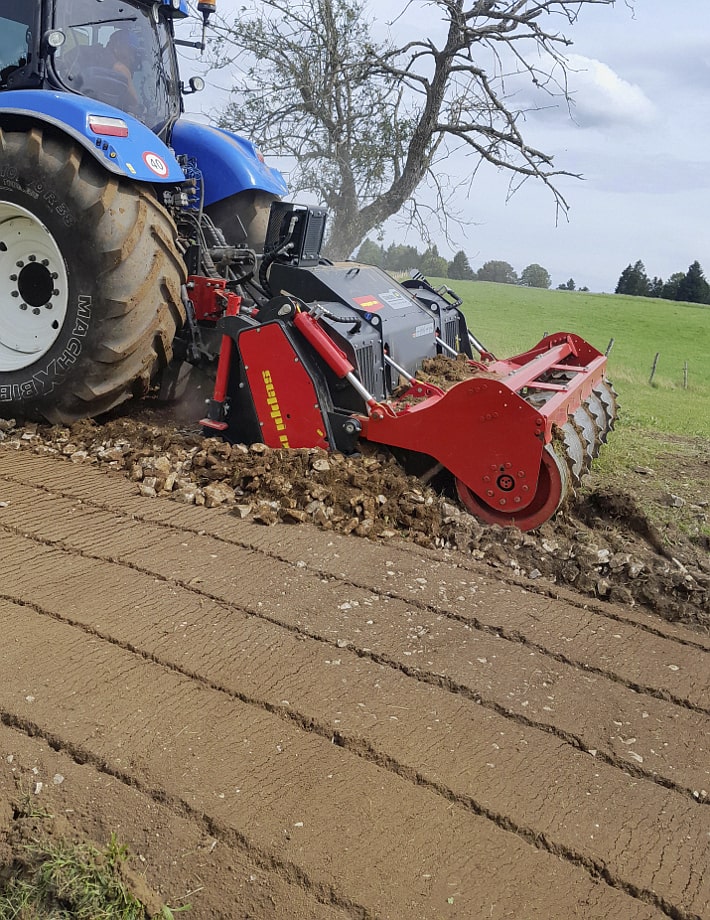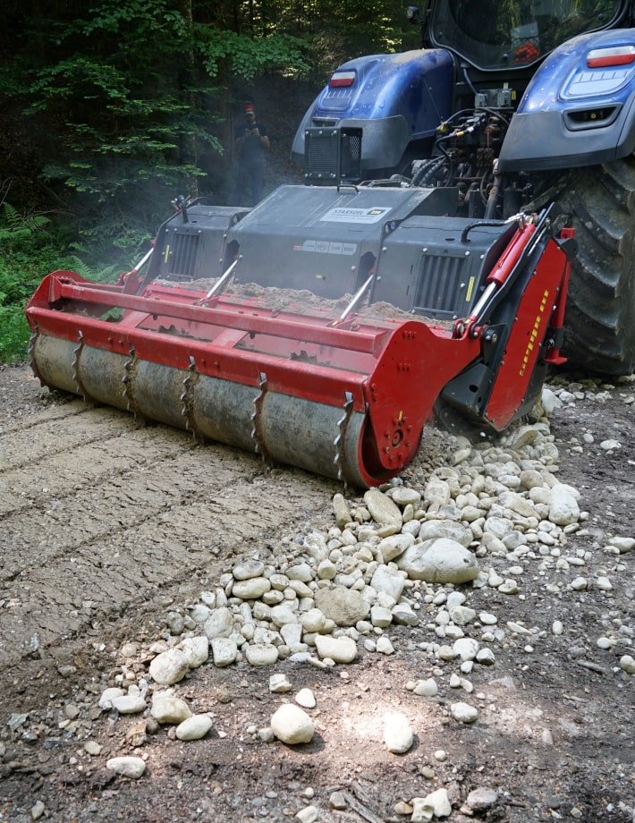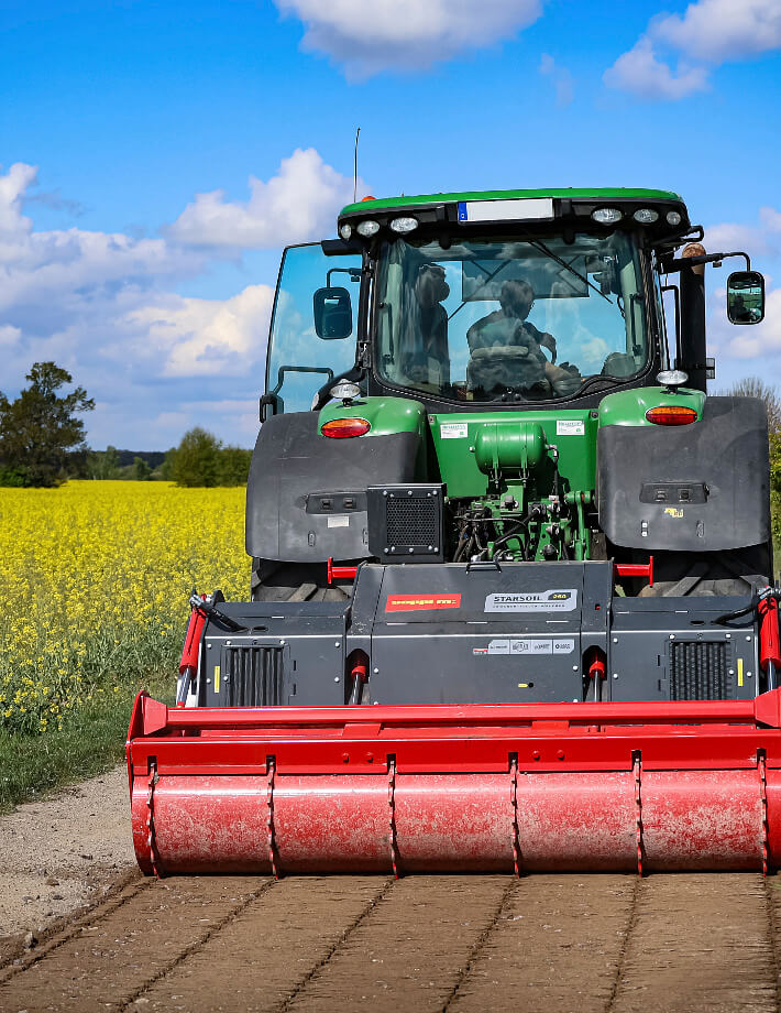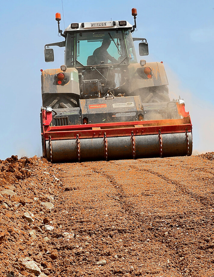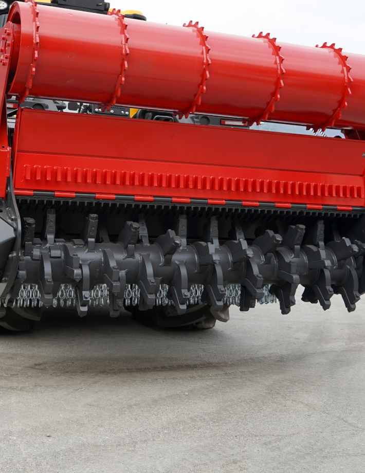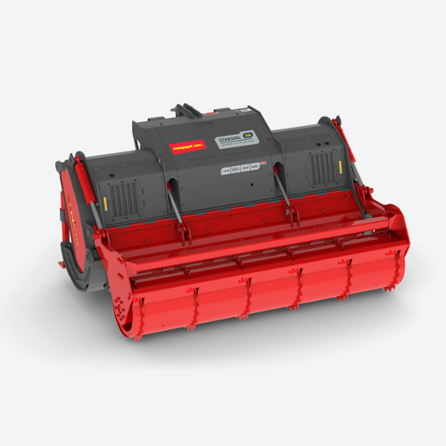 STARSOIL — это мощный мульчер и дробилка камней в одном устройстве. Он дробит камни диаметром до 30 см, измельчает древесину диаметром до 60 см и обрабатывает почву на глубину до 40 см. Стальное шасси AR400, сменные изнашиваемые пластины и мощный ротор с твердосплавными инструментами ULTRA — вот отличительные черты этой мощной машины. Прочная двусторонняя цилиндрическая зубчатая передача доступна в качестве опции с 2-ступенчатой версией POWERSHIFT, что позволяет регулировать и контролировать скорость ротора через терминал ISOBUS.