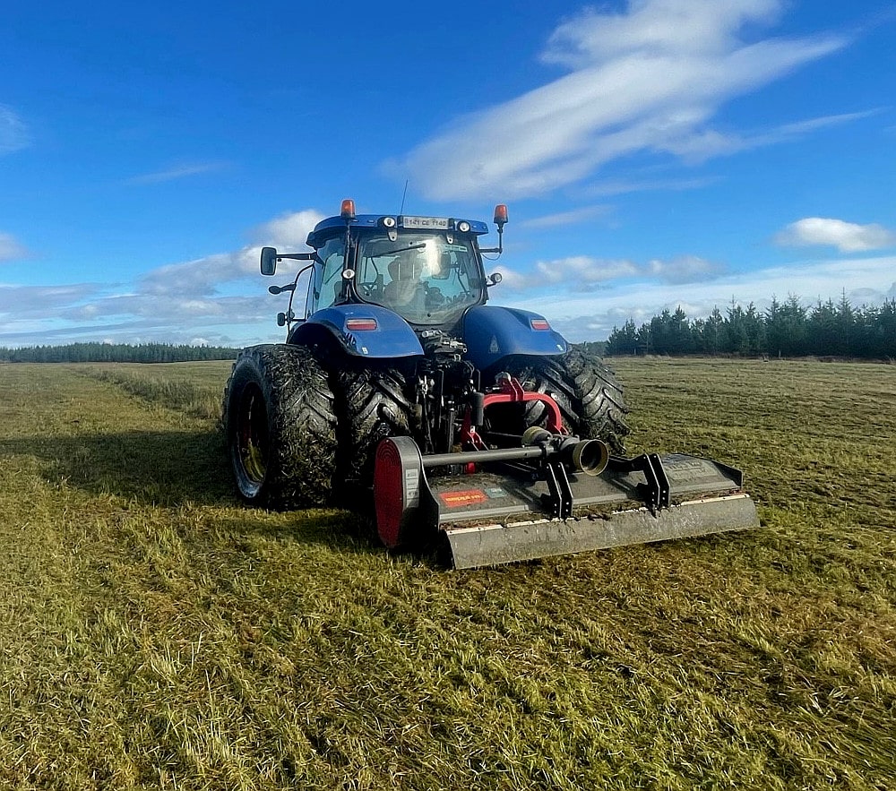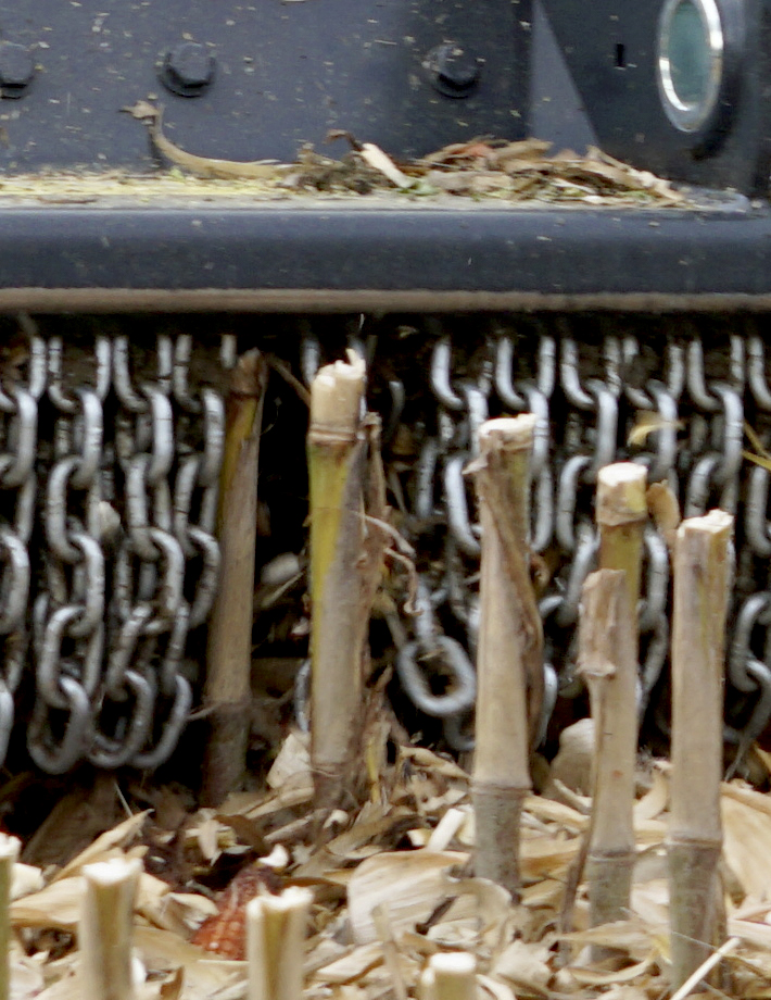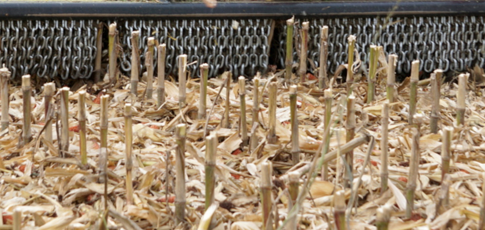 - Измельчение пожнивных остатков (например, кукурузной стерни, стеблей подсолнечника, остатков рапса)