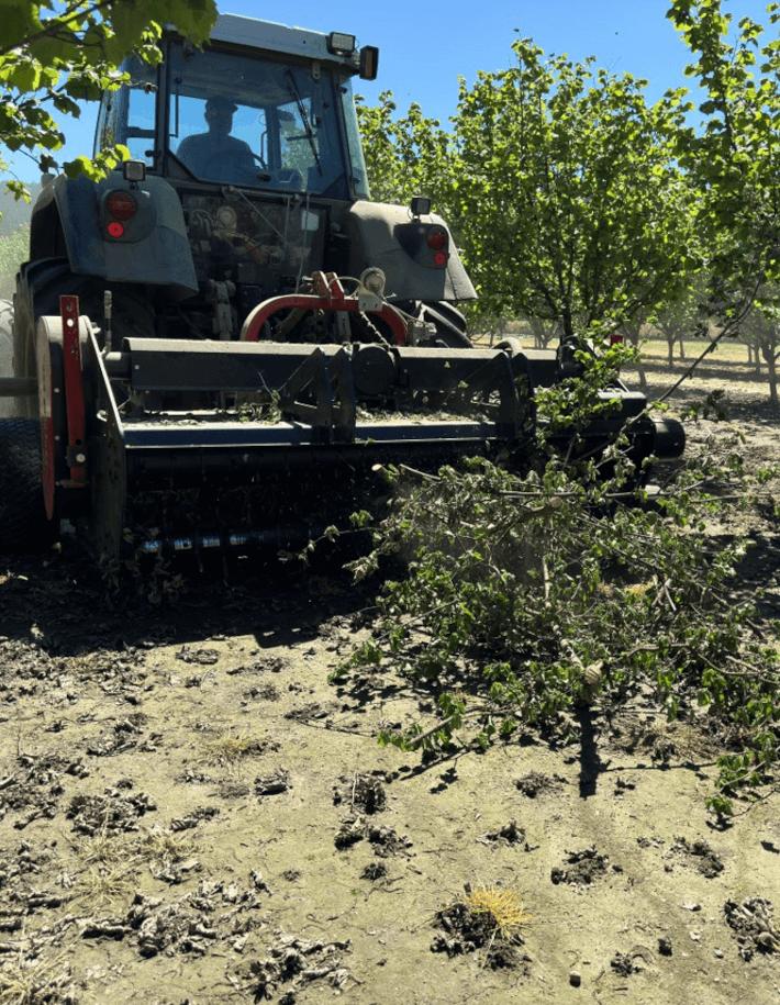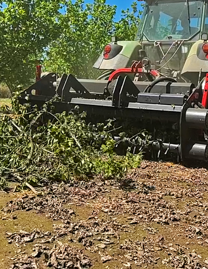 - Измельчение остатков урожая и обрезков в оливковых рощах и ореховых плантациях